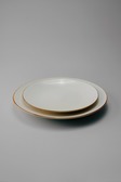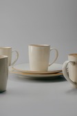 Комплект посуды из 12 предметов из фарфора молочного цвета с коричневым искусственно состаренным кантом. В наборе: обеденные тарелки (d 27 см) - 4 шт., десертные тарелки (d 22 см) - 4 шт., кружки (350 мл) - 4 шт.