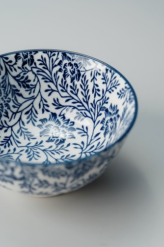 Комплект посуды из 25 предметов из фарфора с цветочным узором. В наборе: обеденные тарелки (d 27 см) - 6 шт., десертные тарелки (d 22 см) - 6 шт., супницы (d 15 см) - 6 шт., пиалы (d 11 см) - 6 шт., блюдо (d 30 см) - 1 шт.
