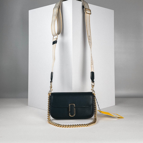 Маленькая сумочка на плечо от американского бренда MARC JACOBS выполнена из натуральной кожи, украшена металлической фурнитурой и представлена в классическом черном цвете. Классический текстильный ремень контрастного бежевого цвета с надписью бренда регулируется по разной высоте. Два основных отделения, одно из которых на молнии позволят вместить все, что Вам необходимо.