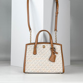 Сумка через плечо из серии CHANTAL с монограммой бренда от MICHAEL KORS идеально подойдет к Вашему повседневному образу. Данная моделька представлена в нашем магазине в нескольких цветах. У сумочки есть три основных отделения под магнитом, один из которых на молнии. В комплекте поставляется длинный комбинированный плечевой ремень. Моделька украшена ненавязчивым металлическим логотипом бренда на фронтальной части.