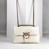 Легендарная LOVE BAG от PINKO из серии PUFF представлена в нашем магазине в нескольких размерах и цветах. Данная моделька очень комфортна по размеру и достаточна вместительна. Регулируемые ремешки позволят обеспечить комфорт при носке изделия. Мягкая стеганая кожа доставит Вам удовольствие при прикосновении. Три внутренних отделения, одно из которых на молнии и одно – на магните обеспечат эргономичное хранение вещей. И конечно основным украшением модели выступает логотип бренда в цвете античного золота на фронтальной части изделия.